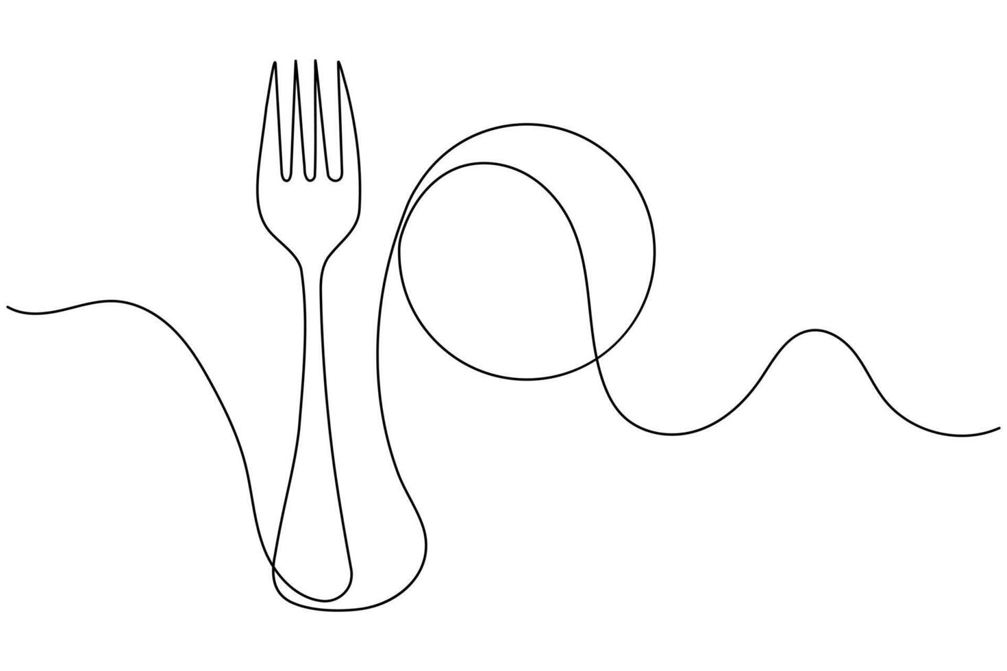 Abstract continuous line art of knife and fork minimal dining utensil sketch Pro Vector