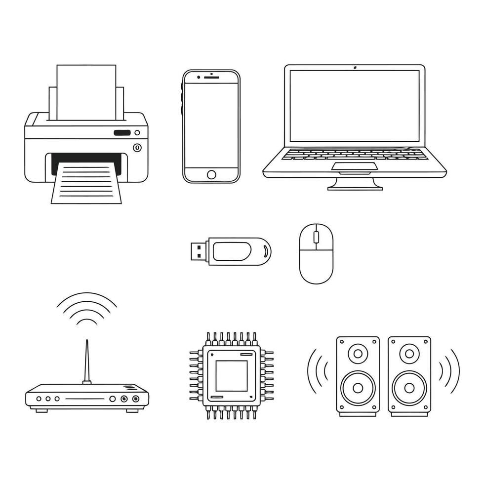 Computer, laptop, printer, mouse, mouse pad, mouse, keyboard, mouse, mouse pad Pro Vector