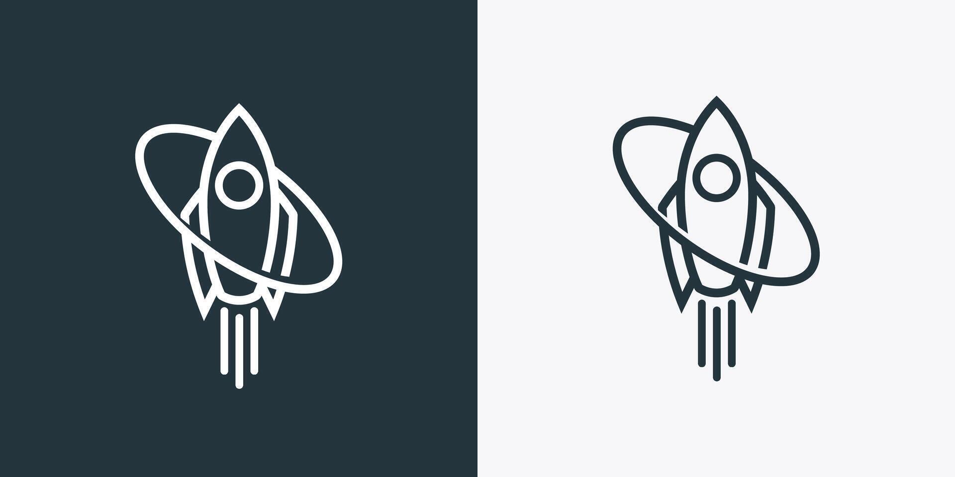 Rocket icon line outline spaceship launch flat isolated graphic Pro Vector