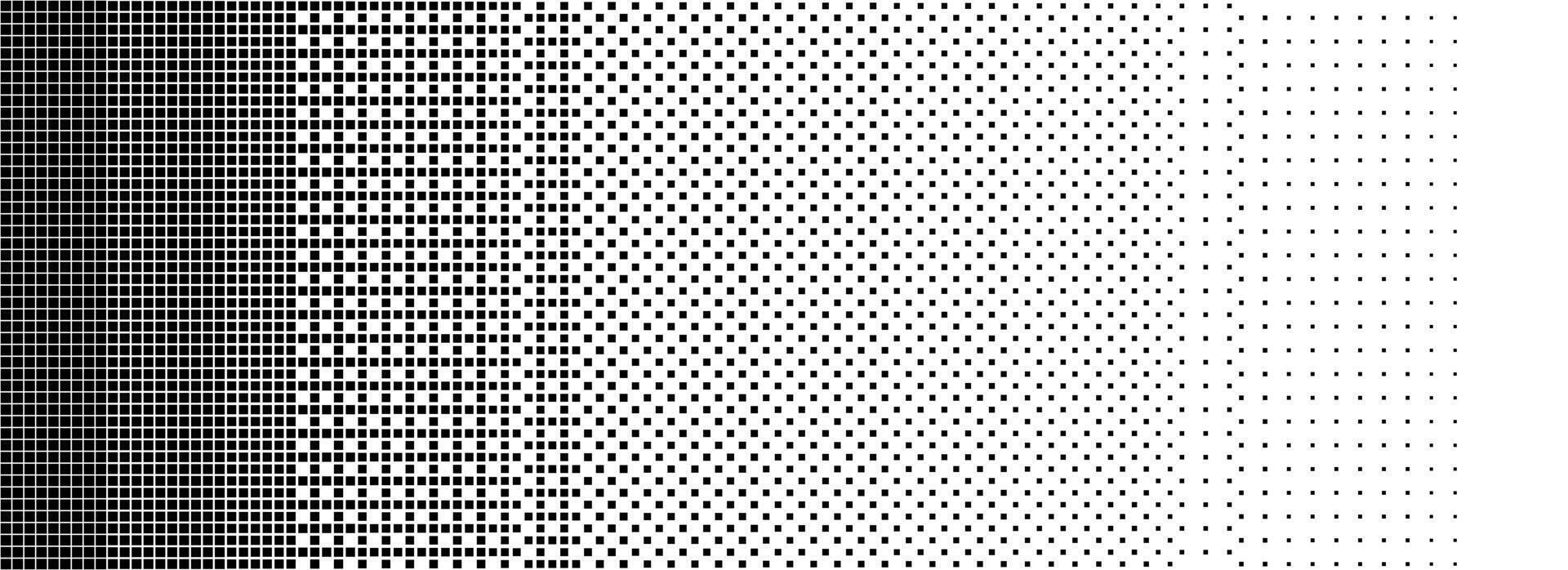 Bitmap halftone texture background. Square dot faded gradation wallpaper. Black and white binary squared pixels. Abstract glitchy 8 bit game backdrop. Comic dither screen tone overlay Pro Vector
