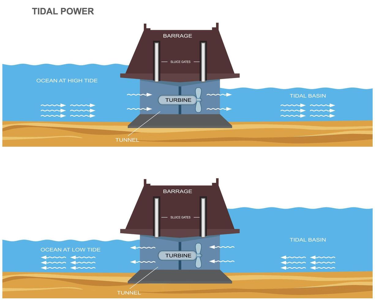 Dynamic Tidal Power Generation, Clean Renewable Energy from Ocean Currents Pro Vector