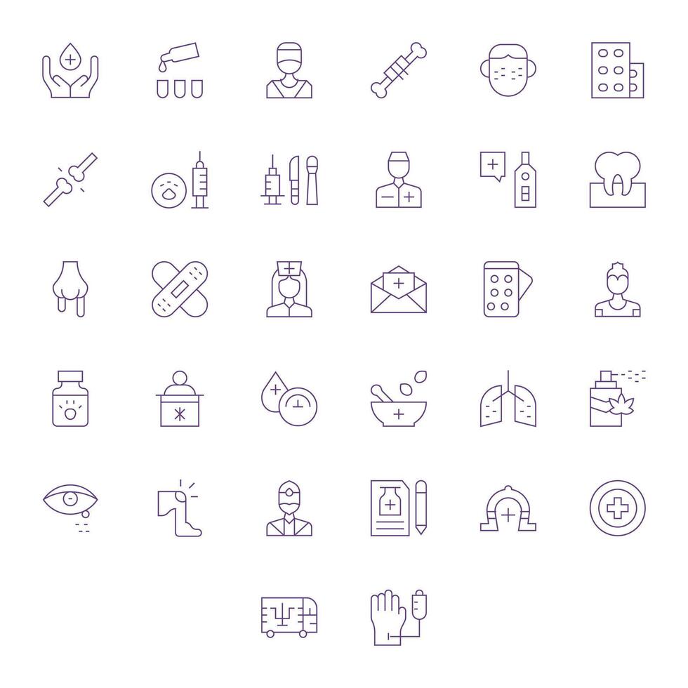 32 Icons for Treatment optimized in Grid Fitted High Resolution Thin Line resolution Free Vector