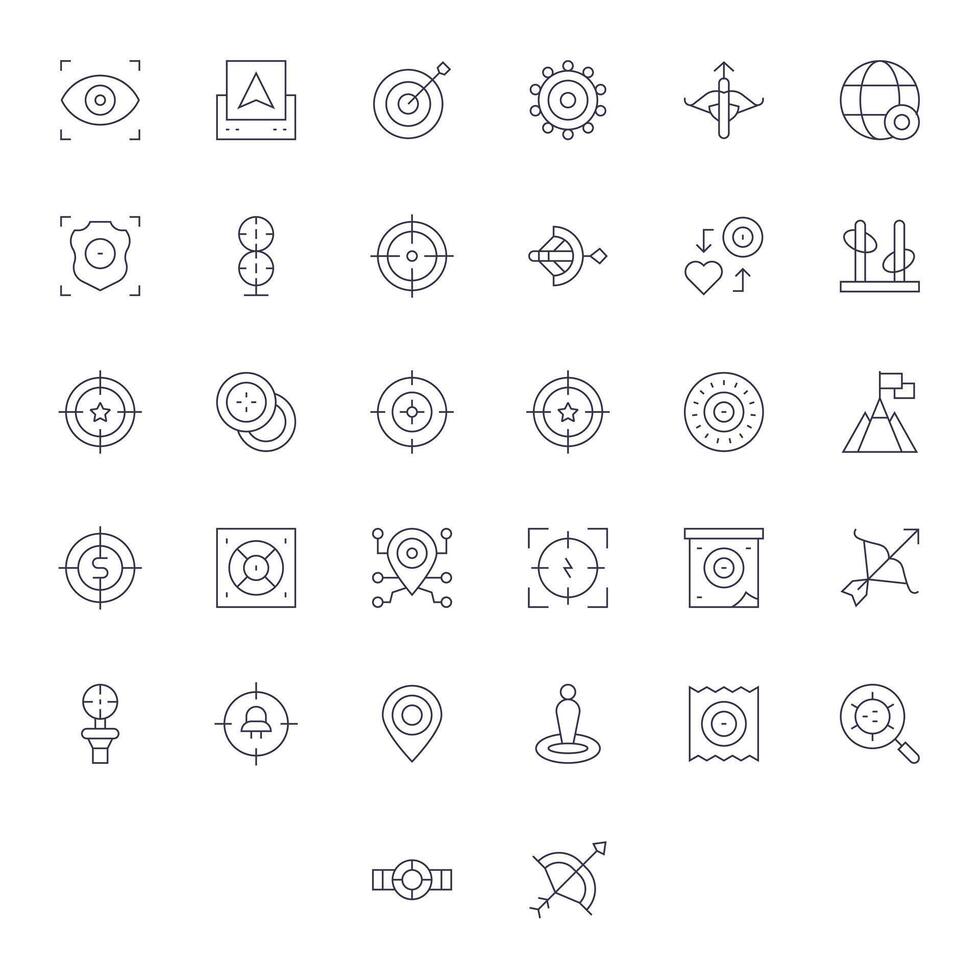 32 Thin Line Icons from Target in 256x256 Grid Fitted Quality vector