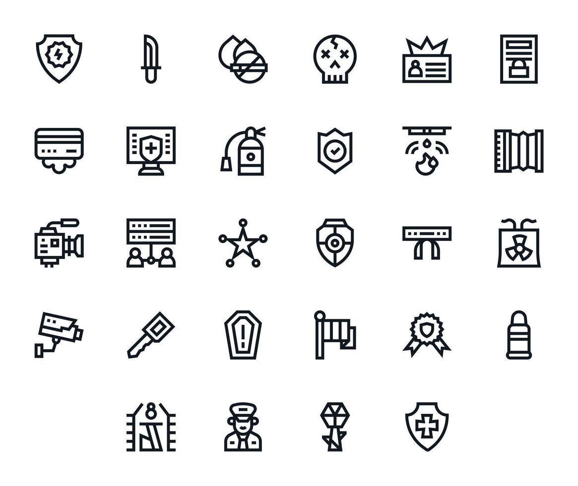 28 Display Perfect Icons themed around Security in High Resolution Bold Line format Free Vector