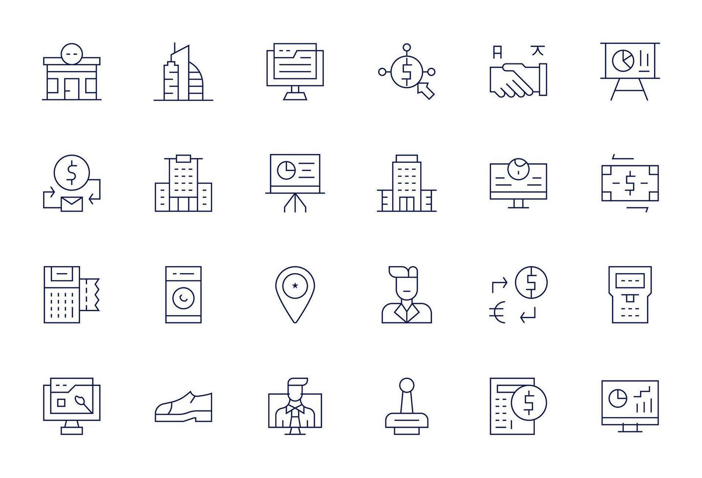 24 PIXEL Perfect Icons themed around Business in High Resolution Thin Line format vector