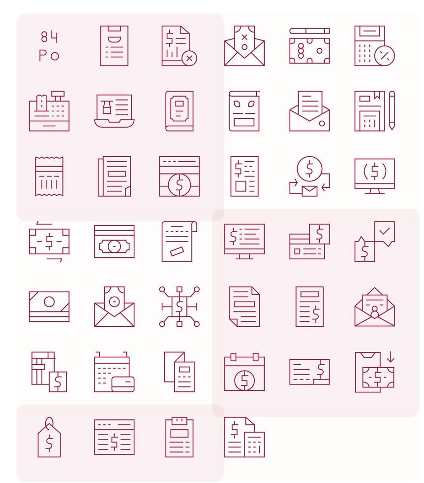 Invoice Icon Arsenal with 40 High Resolution Thin Line Pixel Optimized designs Free Vector