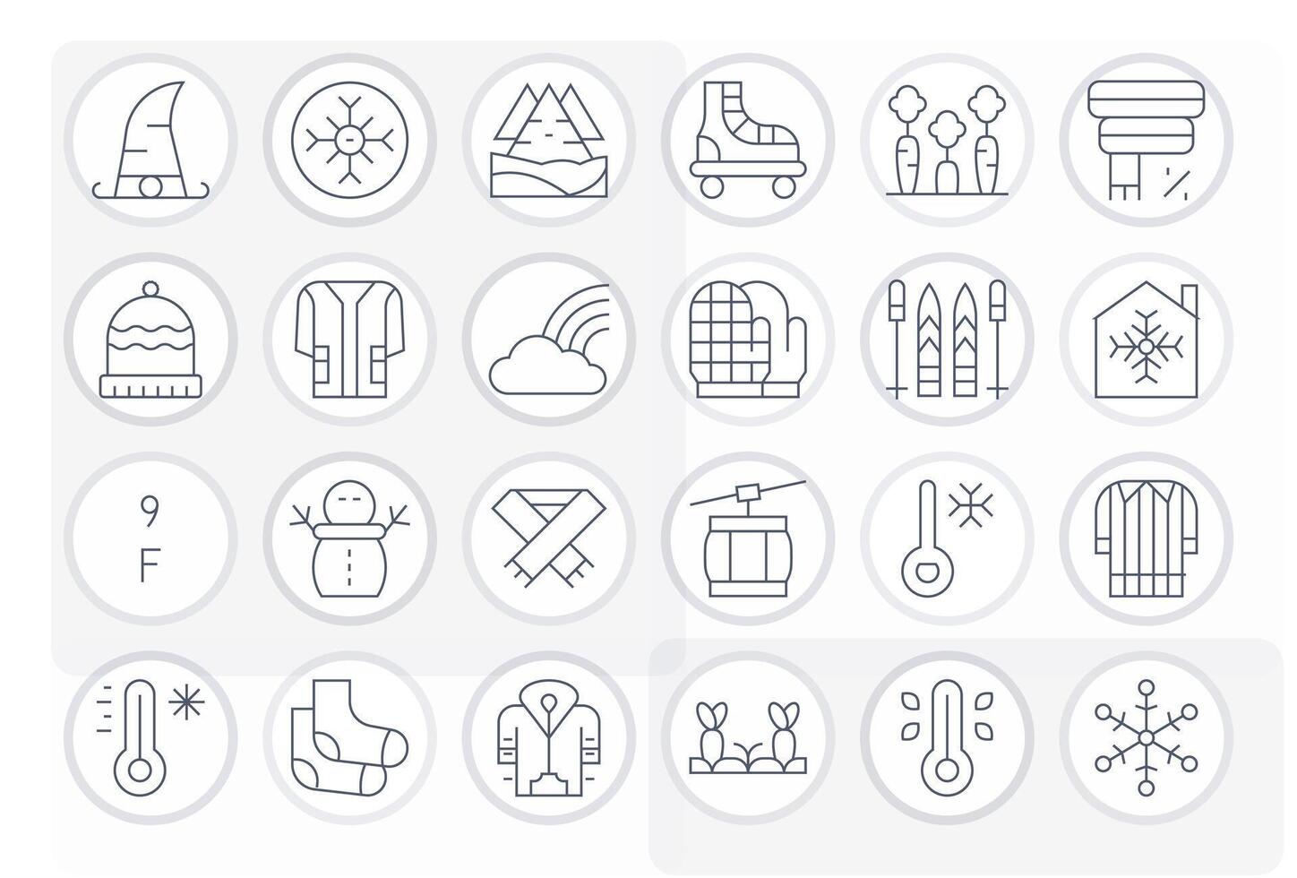 Winter Comprehensive Bundle with 24 Pixel Aligned Thin Line 256x256 Icons vector