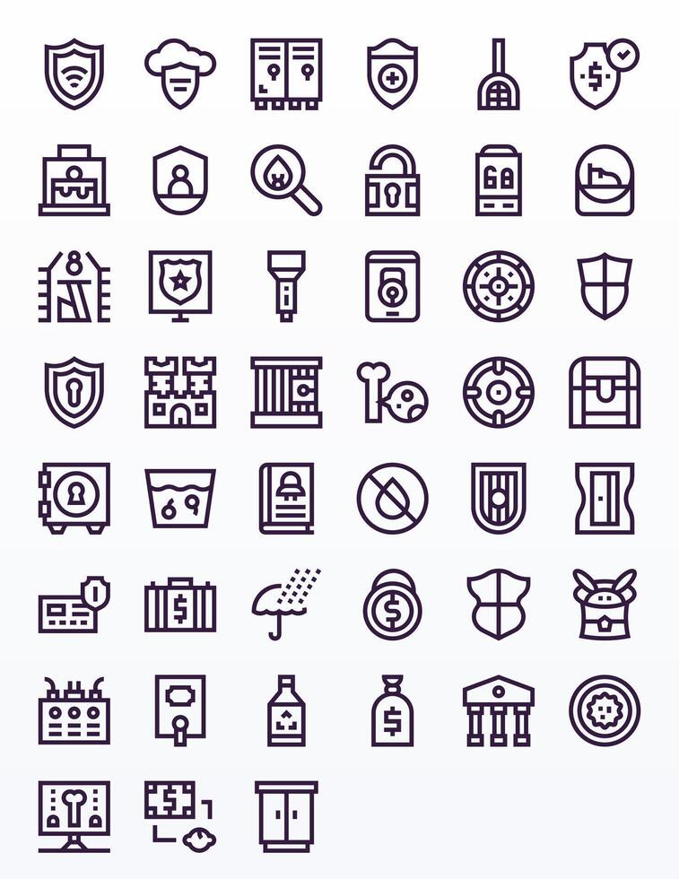 45 Icons for Safe optimized in Grid Fitted High Resolution Bold Line resolution vector
