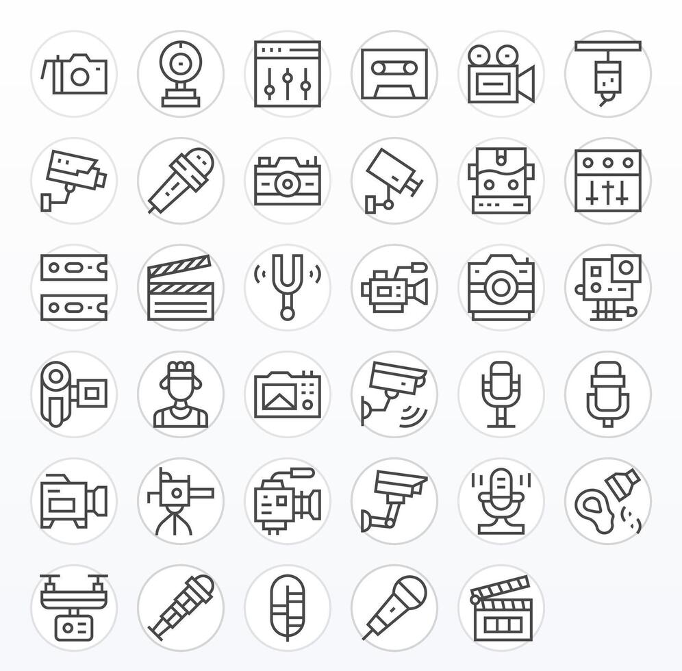 Recording Icon Set with 35 Regular Line 128x128 Pixel Optimized Graphics vector