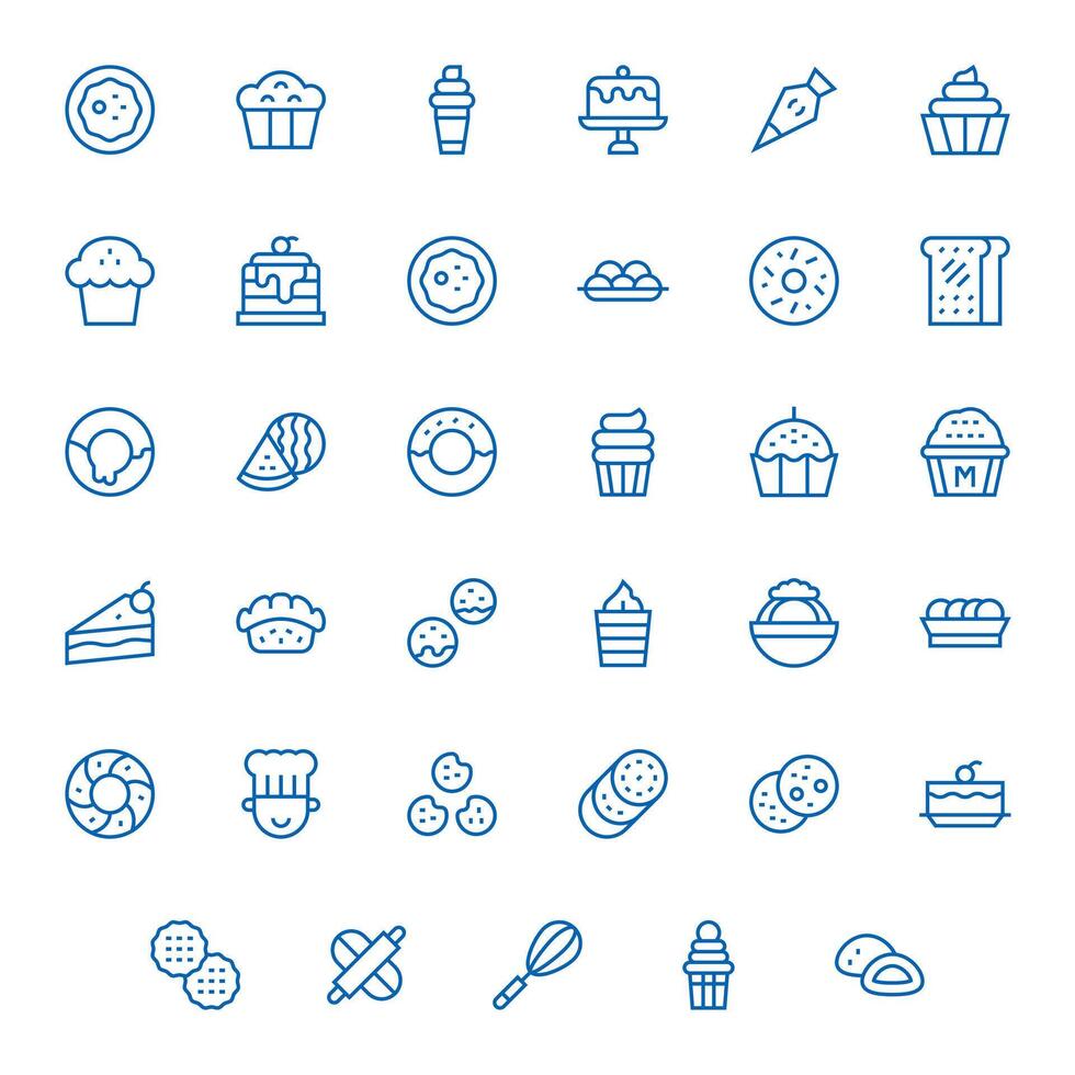 Pastry Icon Toolkit featuring 35 Display Perfect 256x256 Regular Line elements Free Vector