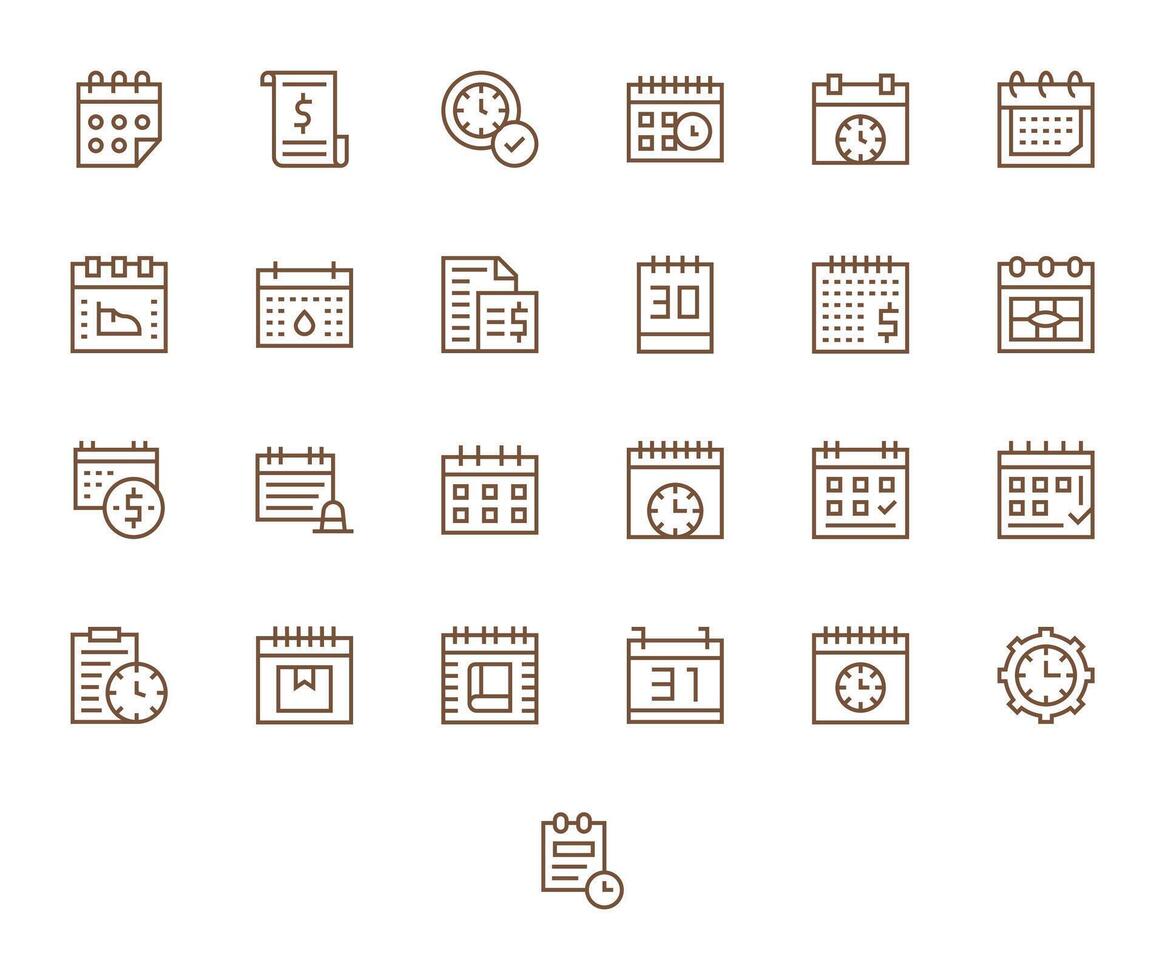 Due Date Icon Library with 25 Regular Line High Resolution Editable Designs vector