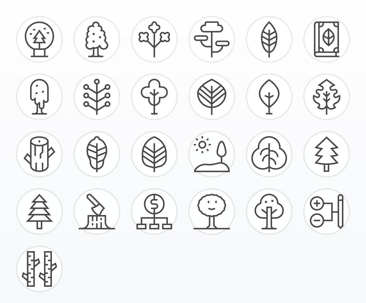 Tree Icon Arsenal with 25 High Resolution Regular Line Pixel Aligned designs vector