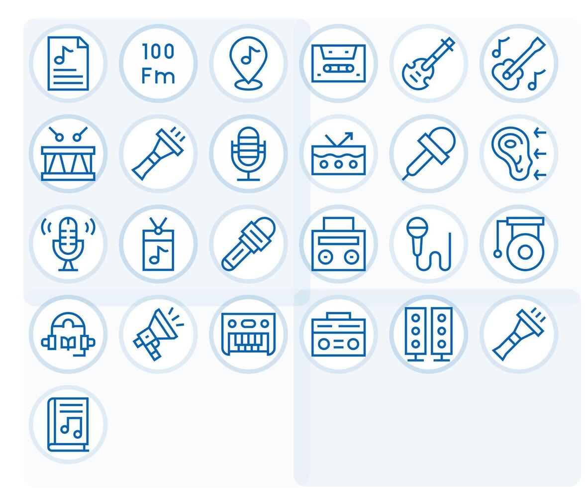 25 Icons for Audio featuring 128x128 Display Perfect Regular Line Graphics vector