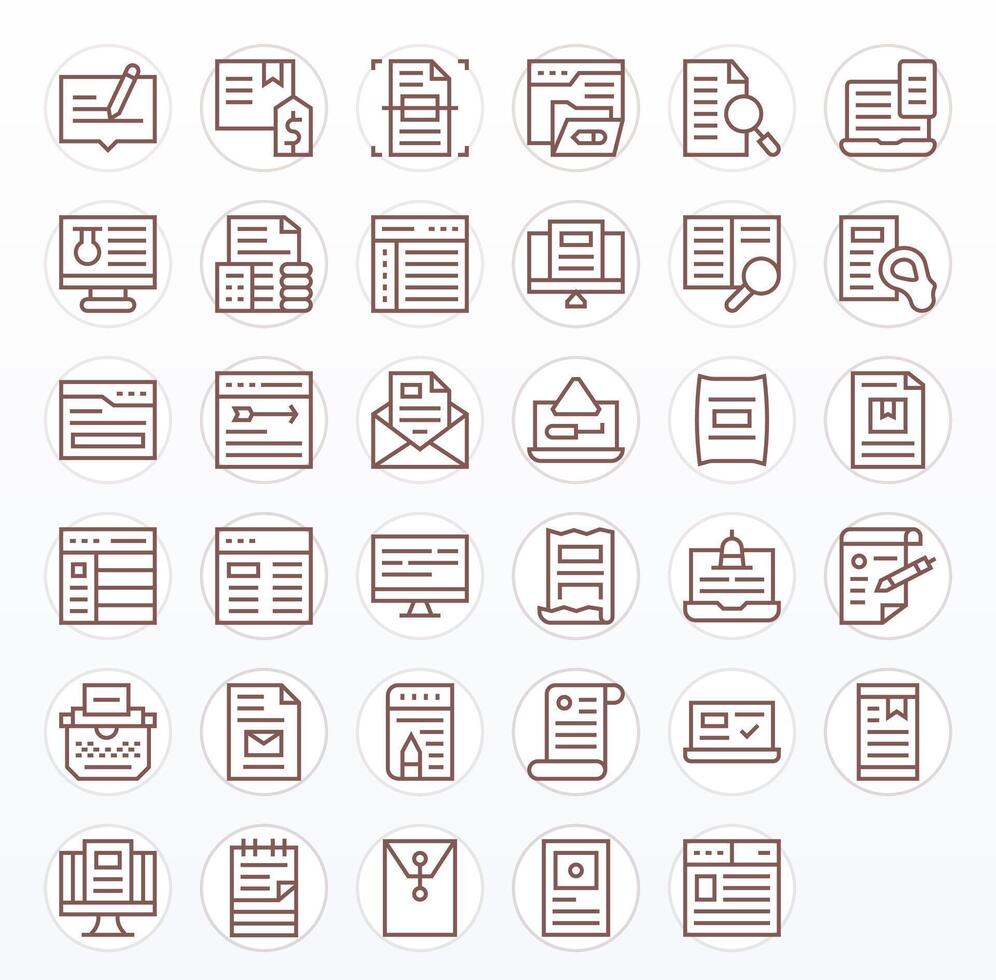 35 Regular Line Icons for Digital Document in crisp 64x64 Pixel Aligned resolution vector