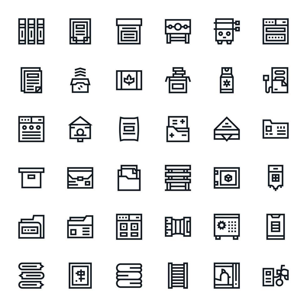 File Cabinet Icon Set with 36 Bold Line 64x64 Pixel Optimized Graphics vector