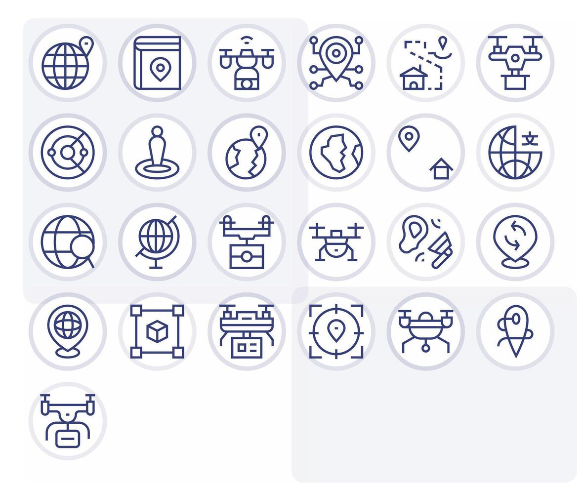 Mapping Visual Pack containing 25 Regular Line Pixel Optimized Icons vector