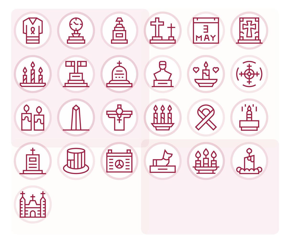 25 Pixel Optimized Regular Line Icons designed for Memorial Interface vector