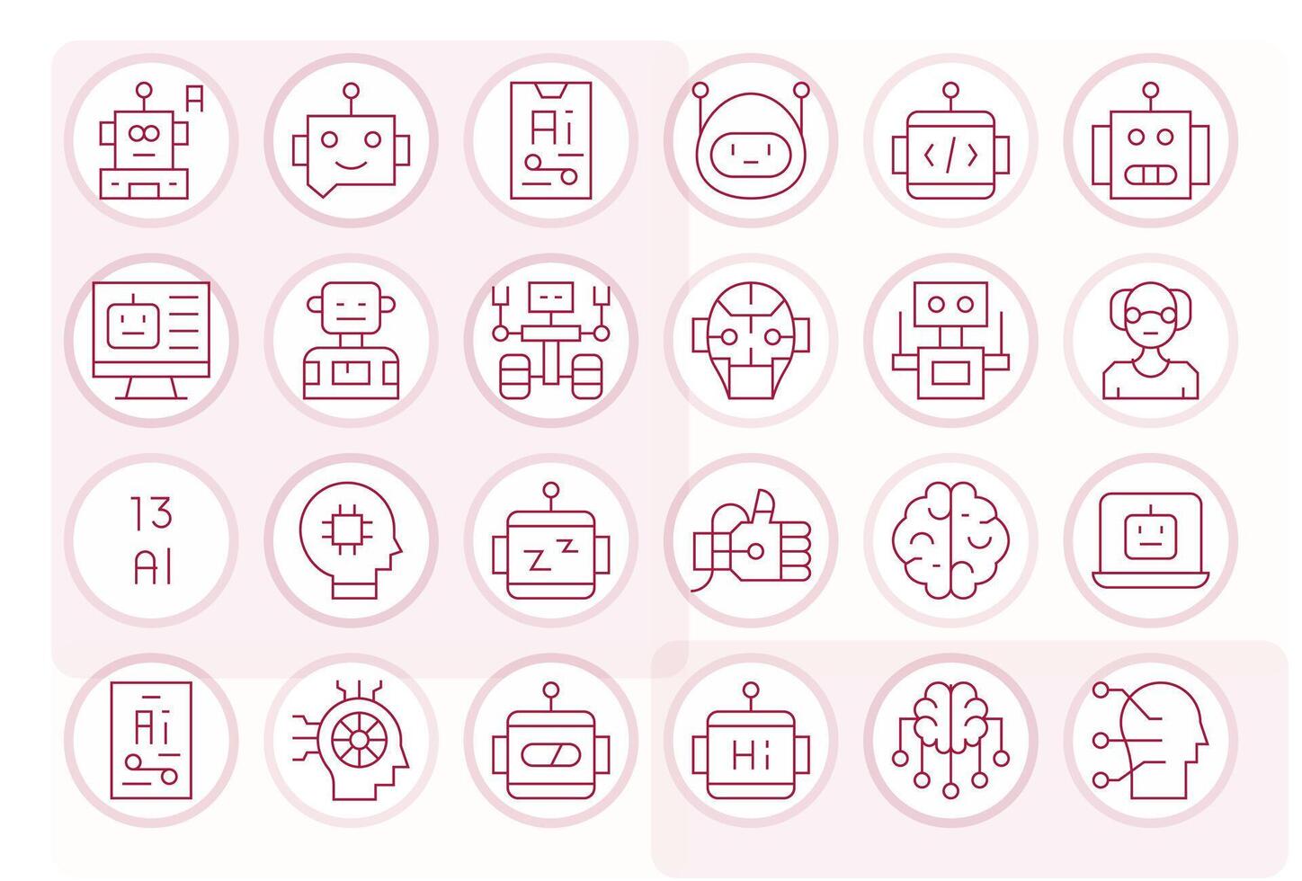 24 Thin Line Display Perfect Icons crafted for Artificial Intelligence 256x256 applications vector