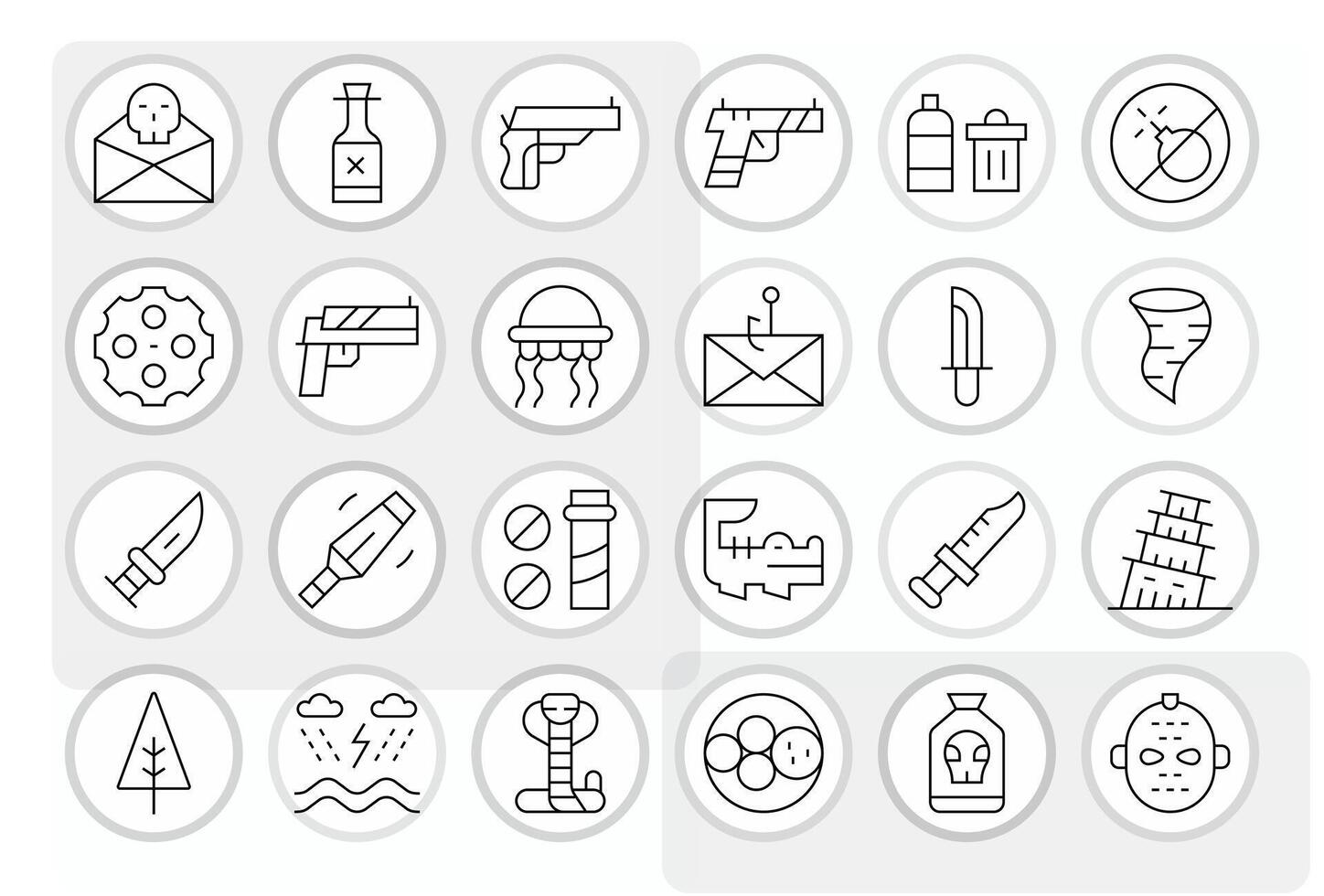 Dangerous Comprehensive Bundle with 24 Editable Thin Line 128x128 Icons Free Vector