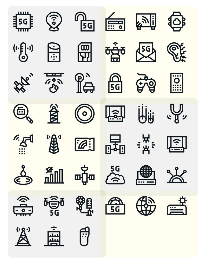 Wireless Comprehensive Bundle with 45 Grid Fitted Bold Line High Resolution Icons Free Vector