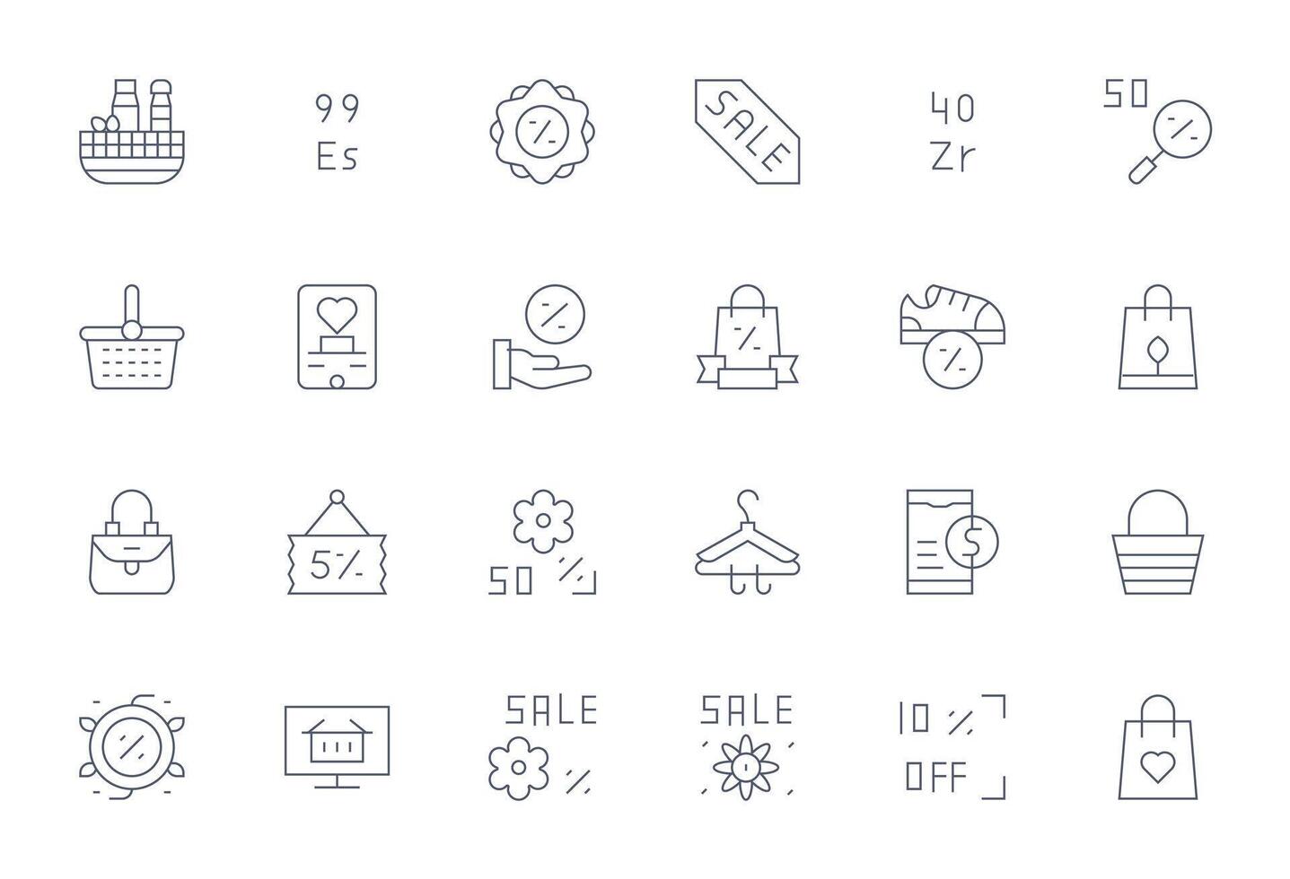 Shopping Complete Package with 24 High Resolution Thin Line Display Perfect Icons Free Vector