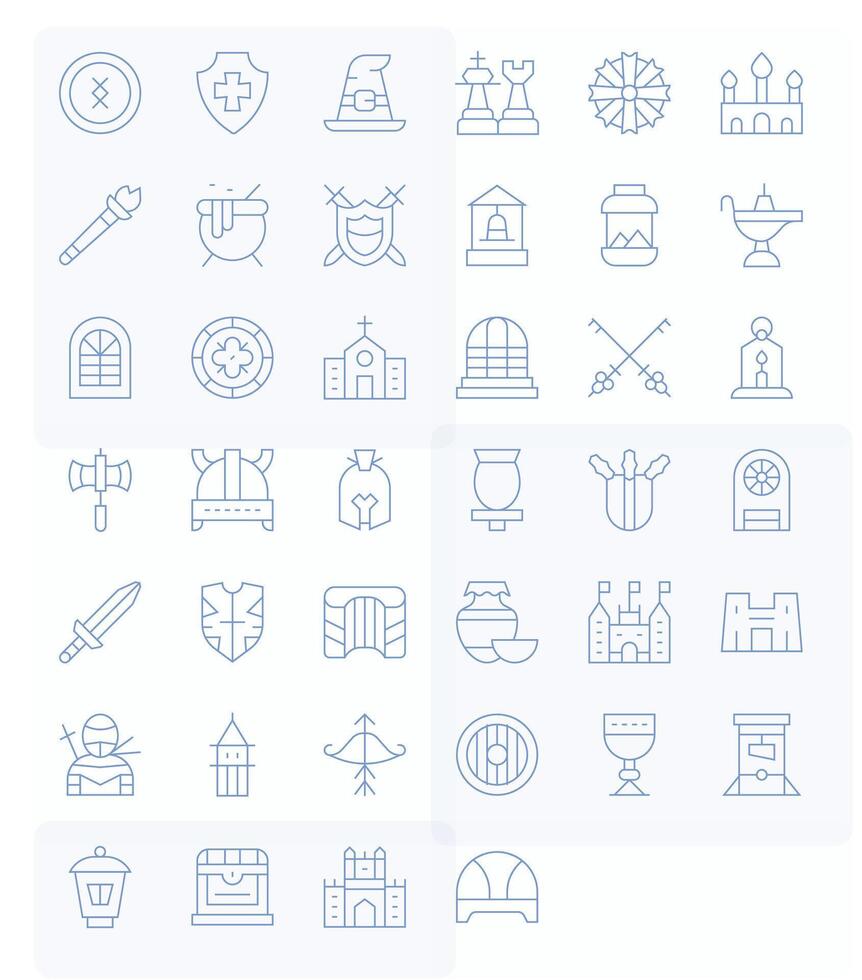 40 Thin Line PIXEL Perfect Icons tailored for Medieval High Resolution interface vector