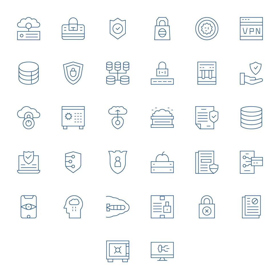 32 128x128 Icons for Data Security in Pixel Aligned Thin Line Format Free Vector