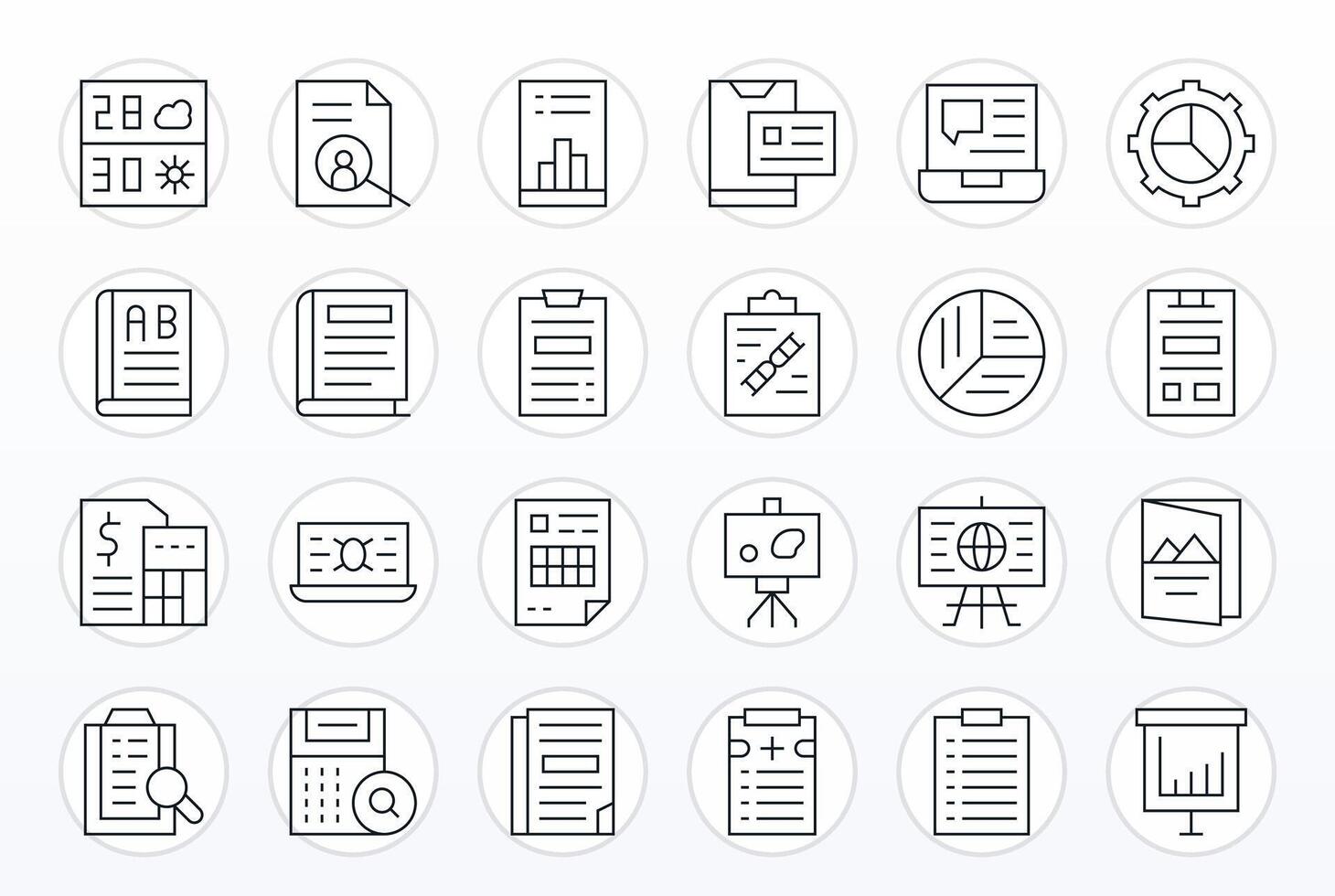 Report Icon Set with 24 Thin Line High Resolution Pixel Optimized Graphics vector