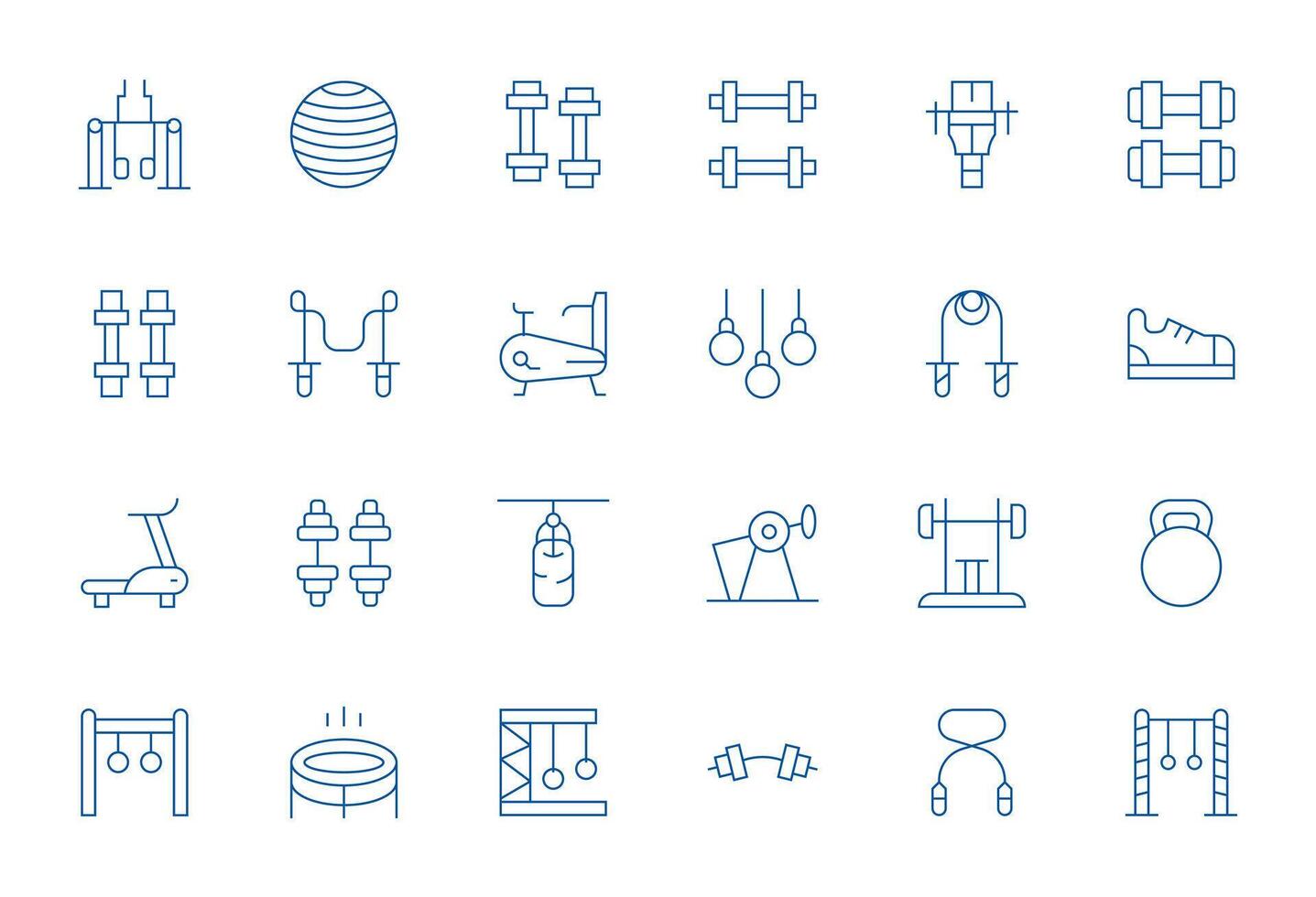 Exercise Equipment Complete Package with 24 256x256 Thin Line Display Perfect Icons vector