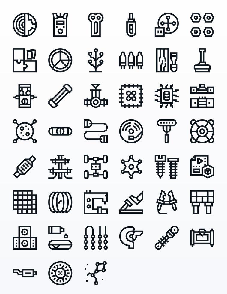 Component Icon Set with 45 Bold Line Retina Ready Pixel Aligned Graphics Free Vector
