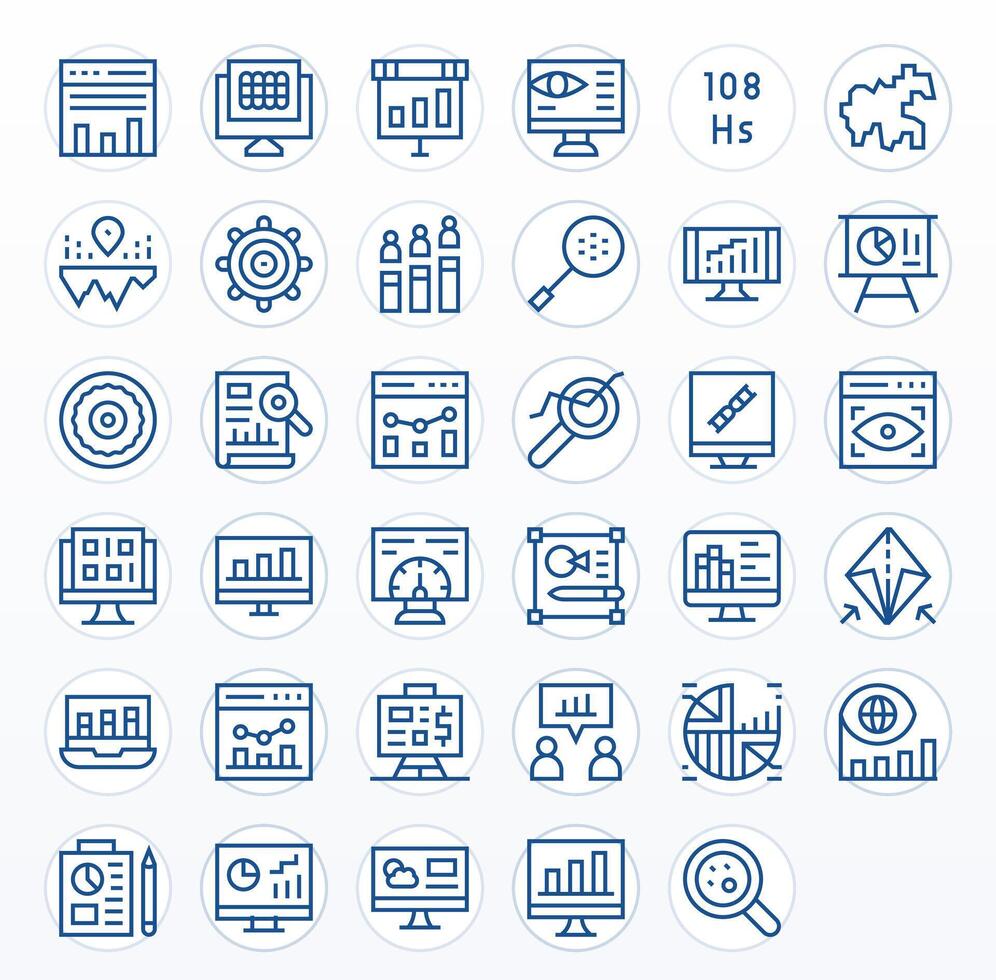 35 Regular Line Icons from Visualization in 256x256 Grid Fitted Quality vector
