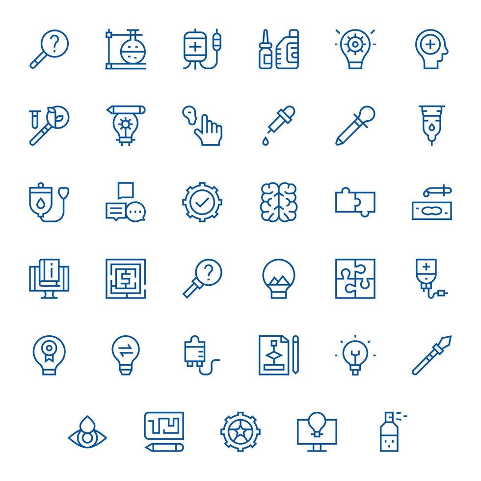 Solution Complete Package with 35 256x256 Regular Line Grid Fitted Icons Free Vector