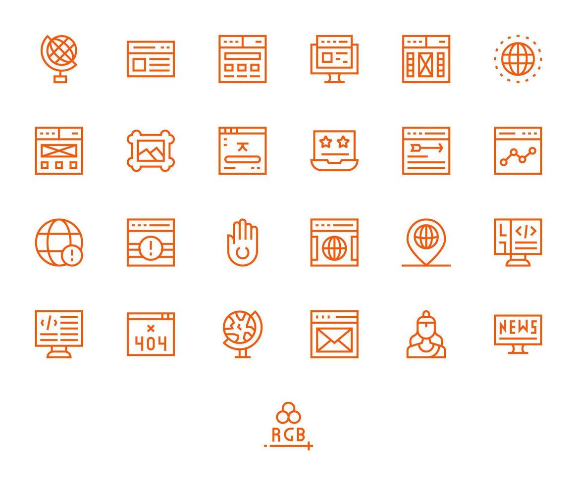 25 Grid Fitted Icons themed around Website in 256x256 Regular Line format Free Vector