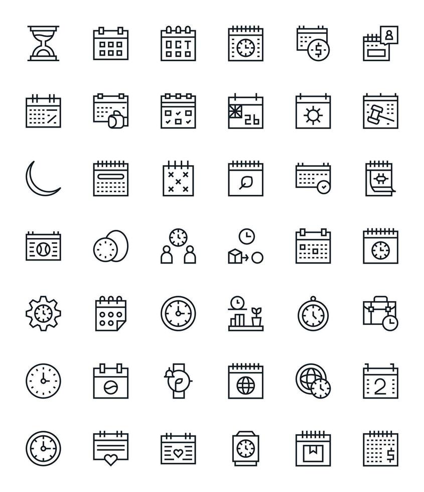 Calendar Professional Set with 42 Regular Line Pixel Optimized High Resolution Icons Free Vector