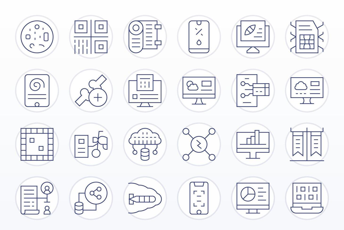 Digital Data featuring 24 256x256 Icons in Thin Line Design vector