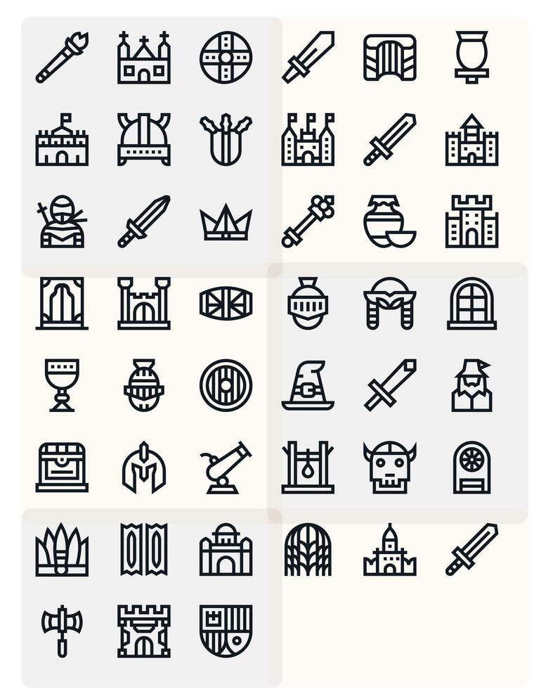 Medieval Scalable Set featuring 45 Pixel Optimized Bold Line High Resolution Icons Free Vector