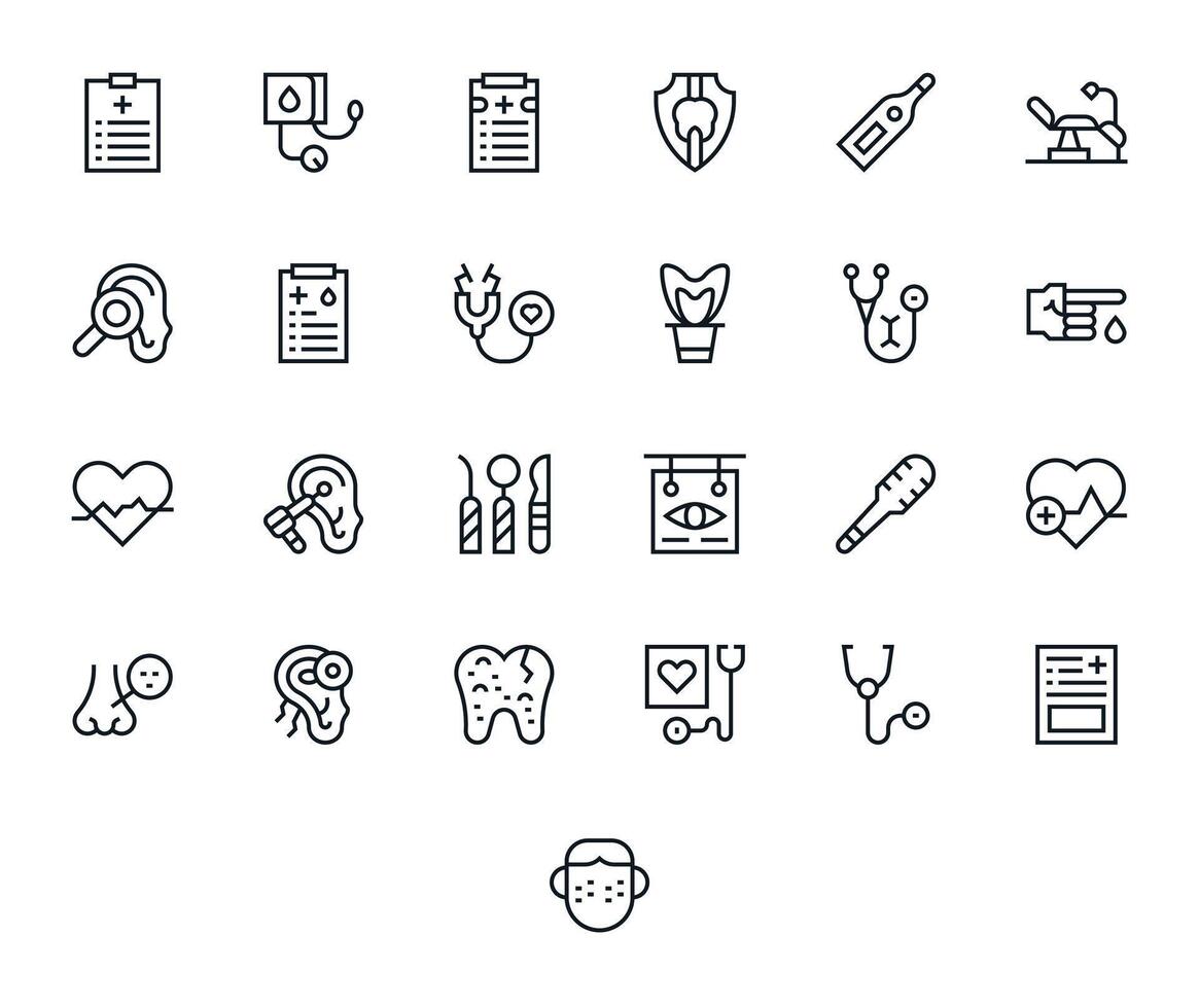 25 Regular Line Pixel Optimized High Resolution Icons from Checkup Suite vector