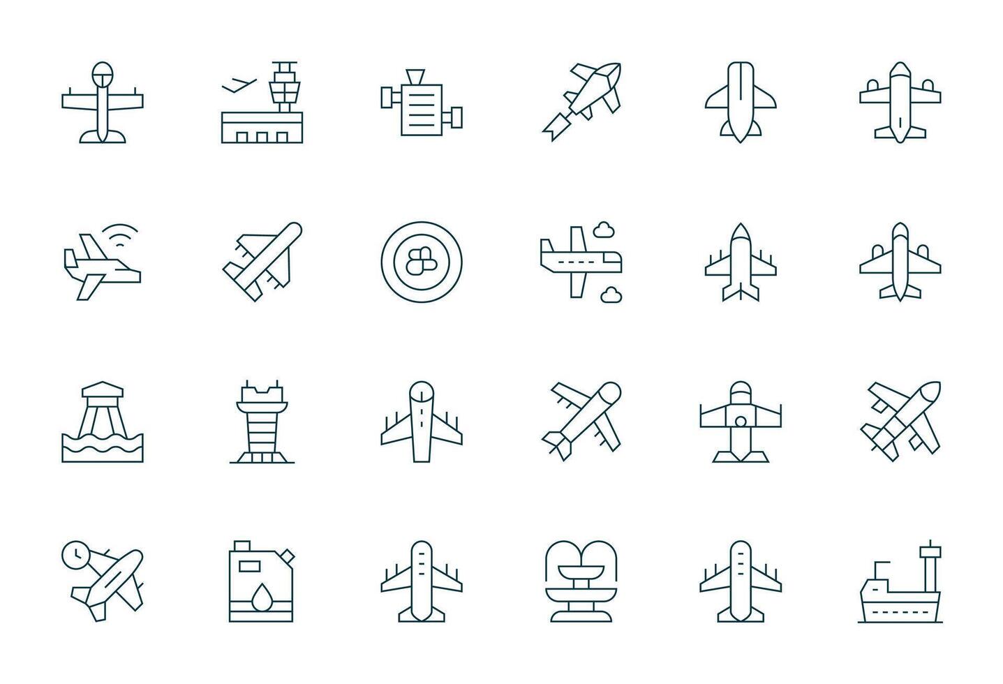 Jet Icon Set with 24 Thin Line High Resolution Editable Graphics vector