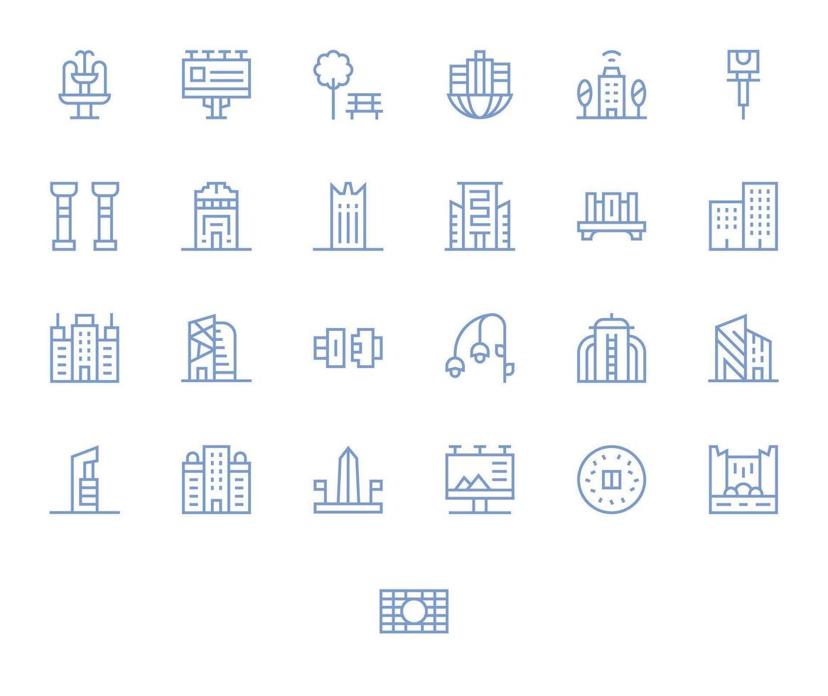 Urban Design Graphics Pack including 25 Regular Line High Resolution Pixel Optimized Icons vector