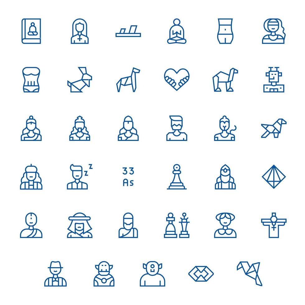 Figure Graphics Pack including 35 Regular Line High Resolution Pixel Optimized Icons Free Vector