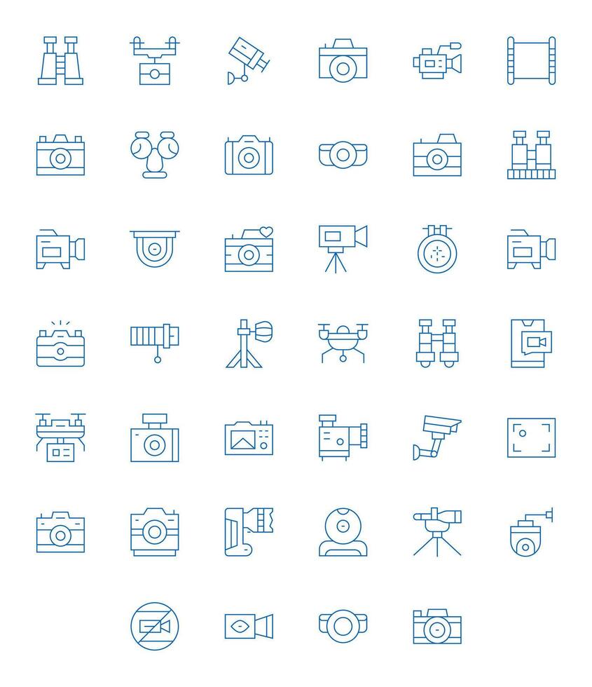 40 64x64 Thin Line Icons optimized for Camera Display Perfect display Free Vector