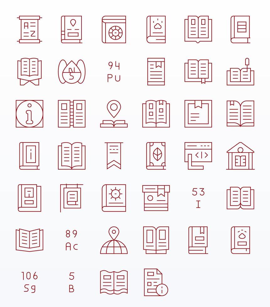 Reference High Resolution Icon Pack with 40 Thin Line Editable Elements Free Vector
