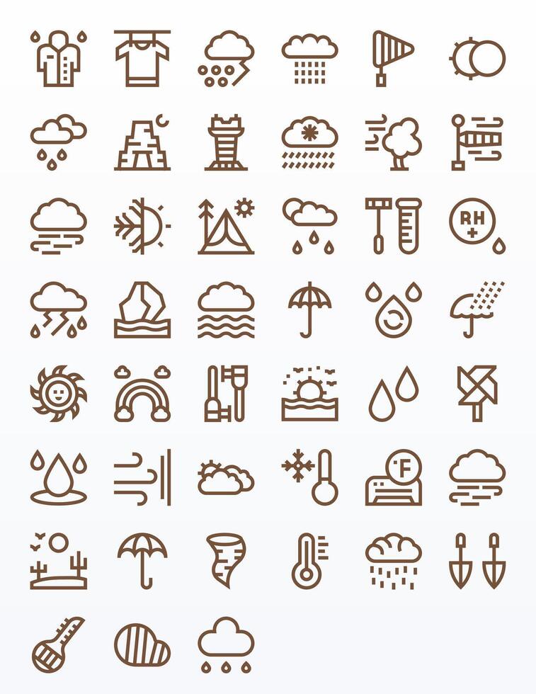 45 Pixel Aligned Icons themed around Weather in High Resolution Bold Line format vector