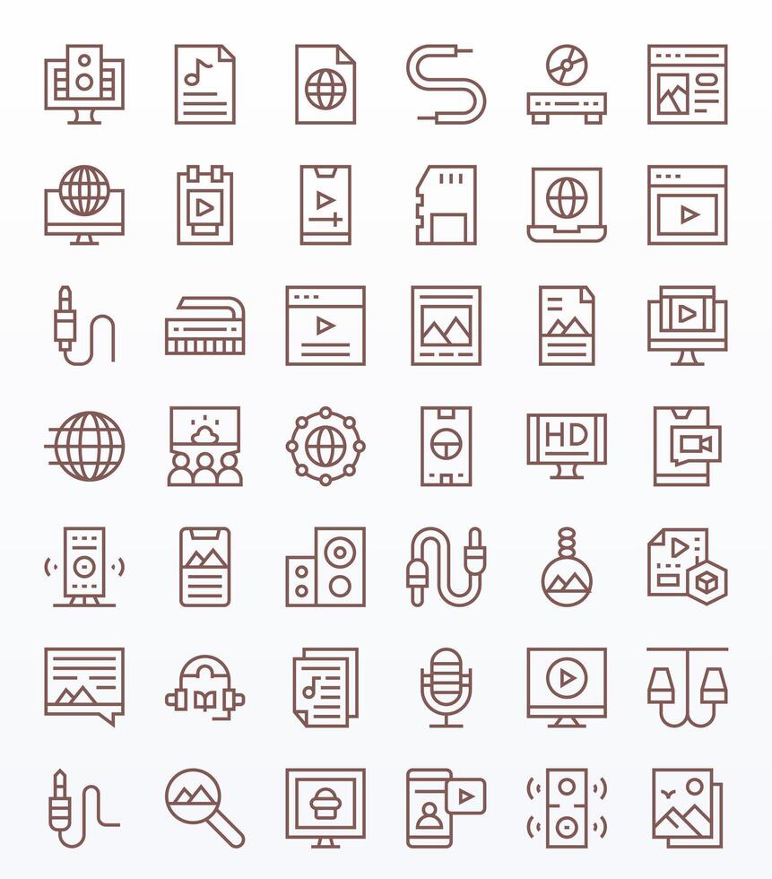 42 Regular Line Icons for Multimedia in crisp High Resolution PIXEL Perfect resolution Free Vector