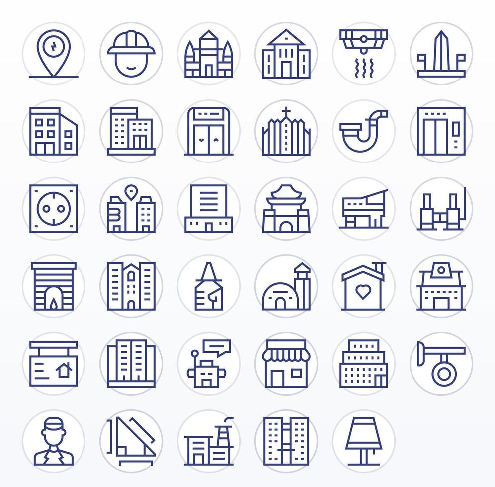 35 Regular Line Pixel Optimized Vectors for Building Theme