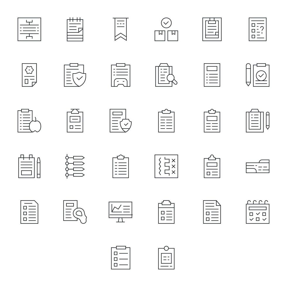 32 Icons for Checklist featuring 256x256 Display Perfect Thin Line Graphics vector