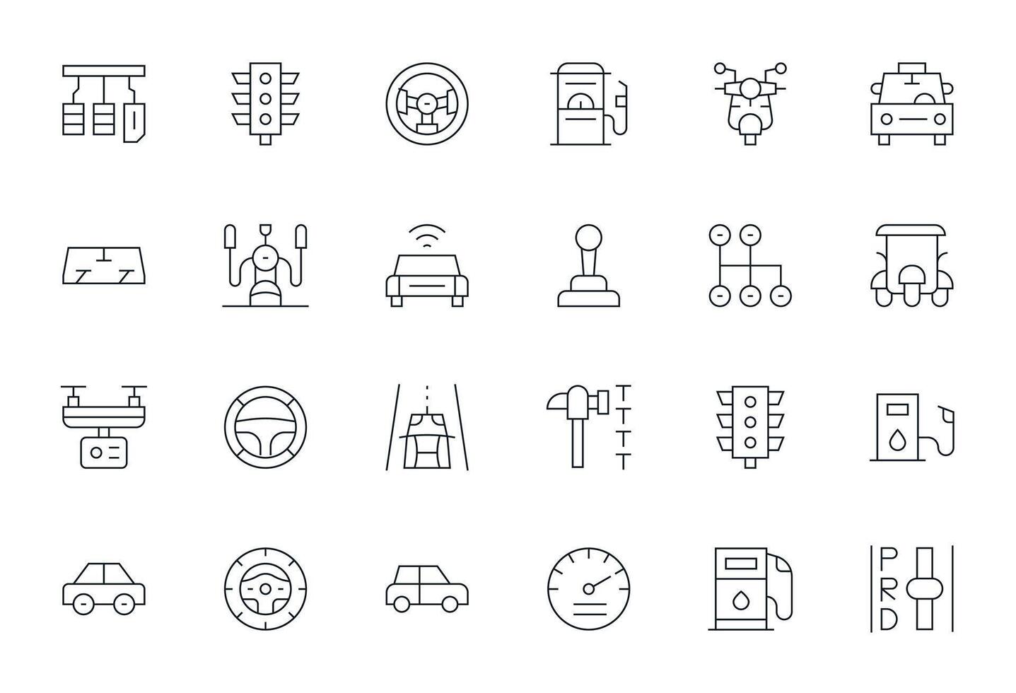 Driving Icon Toolkit featuring 24 Pixel Aligned 128x128 Thin Line elements vector
