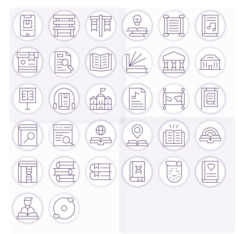 32 High Resolution Icons for Library in Editable Thin Line Format vector