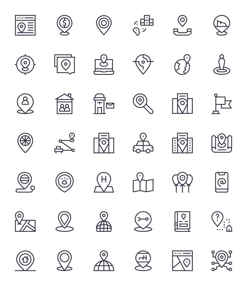 42 Icons for Address optimized in Pixel Aligned 256x256 Regular Line resolution Free Vector