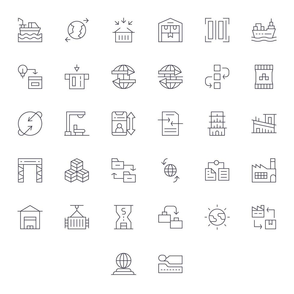 32 Thin Line Pixel Aligned Icons tailored for Import 128x128 interface vector
